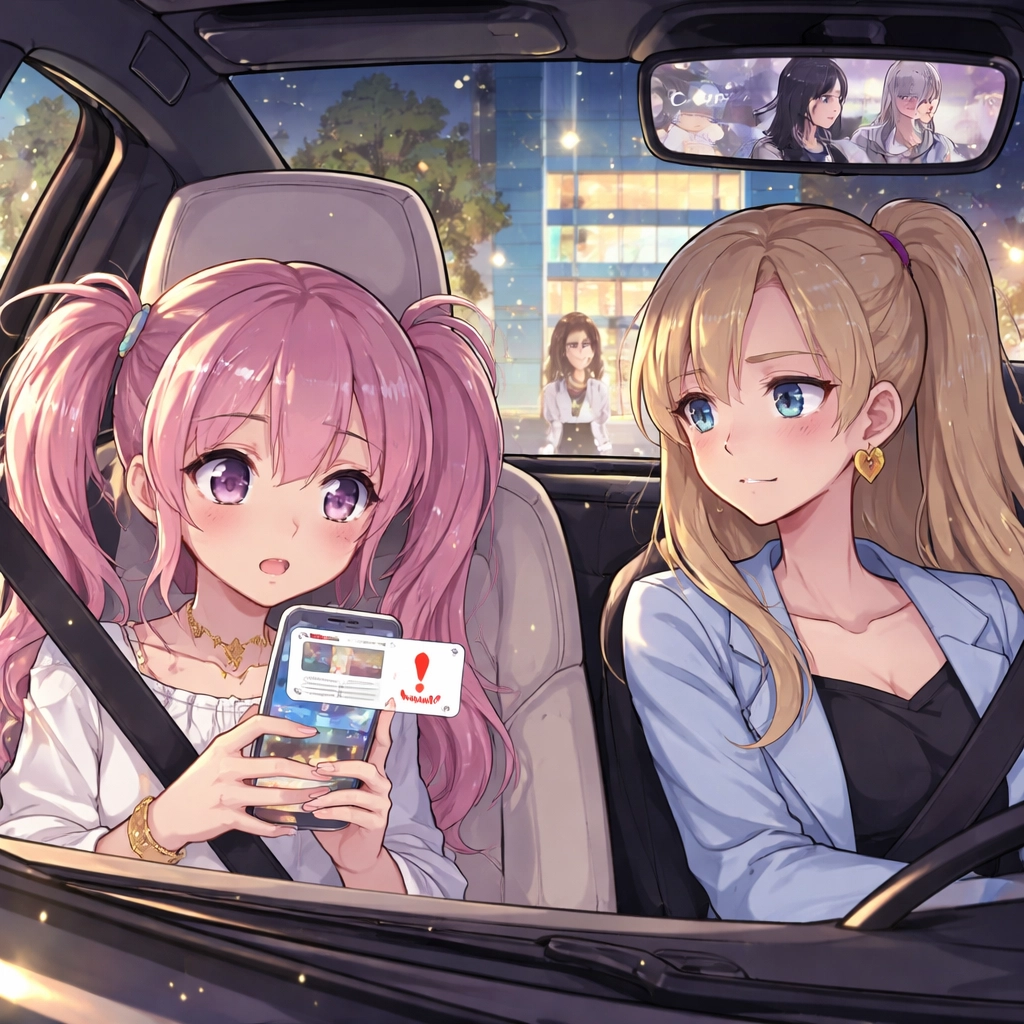 Capri was following me and Piper. We then see this black Jeep, Capri's following us and we jump in the car.