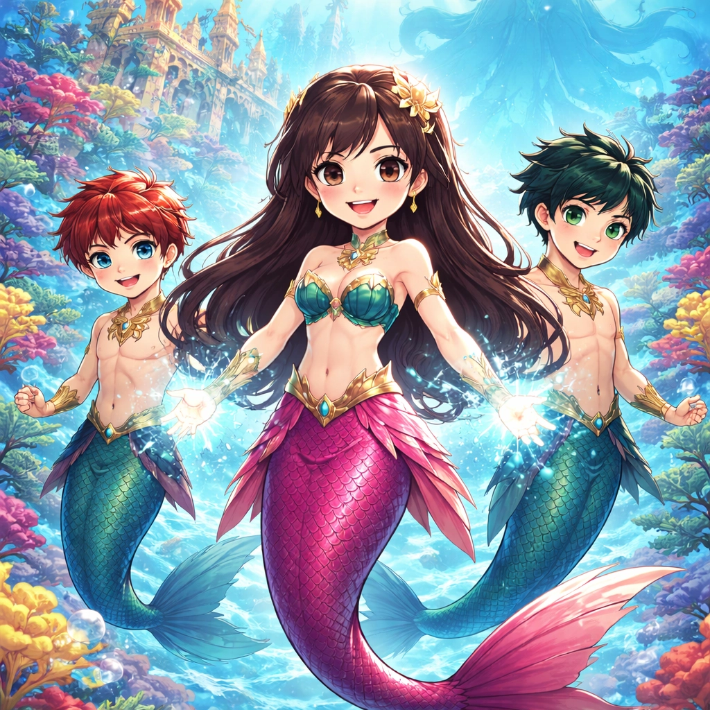 I'm a mermaid princess and I have special powers like water powers and mind reading. I have dark brown hair and dark cas of eyes.